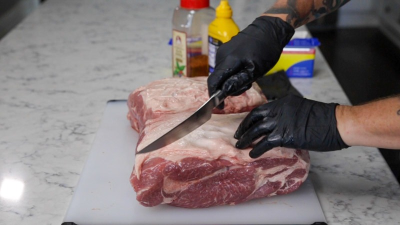 - Trim and Score: Trim away loose fat or silver skin. Use a sharp knife to score the fat cap in a 1-inch crosshatch pattern, cutting just down to the meat.